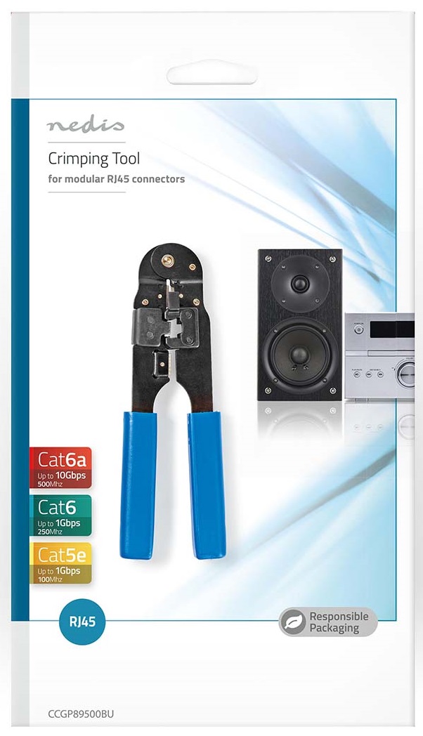 Crimpatrice per l'assemblaggio di connettori RJ45 (8/8) modulari*. Utilizzabile per l'allestimento di reti ISDN e UTP.