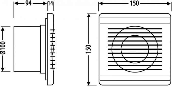 Aspiratore 15W 120m3/h 35Db Φ100x80mm nero Vito