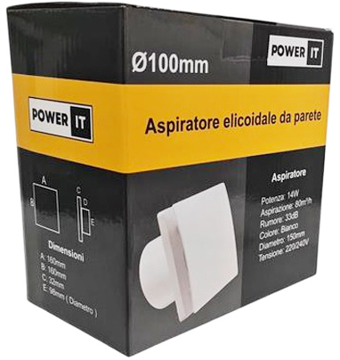 Aspiratore elicoidale 14W 80m3/h 33db 100mm