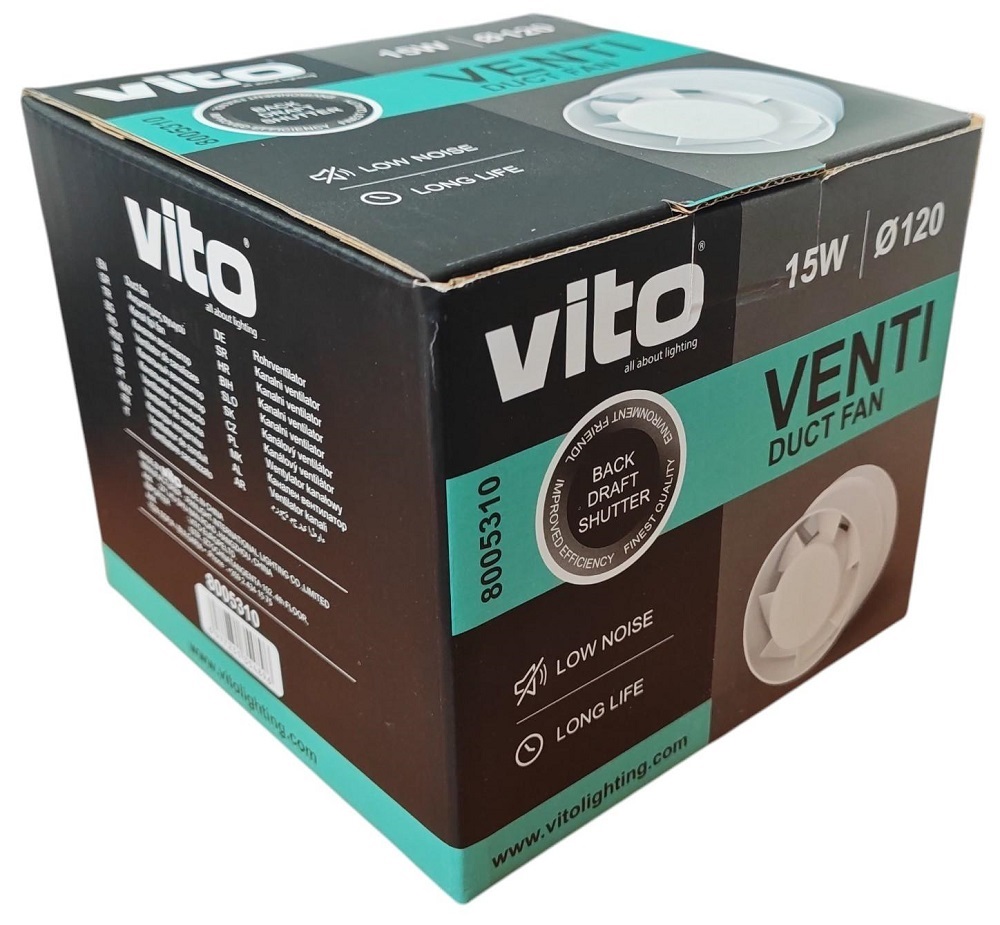 L’aspiratore da condotto Vito Venti-P120 è pensato per garantire un ricambio d’aria efficace e continuo in ambienti come bagni, cucine e locali di servizio. Progettato per l’installazione all’interno di sistemi di ventilazione canalizzati, unisce buone prestazioni, funzionamento silenzioso e una struttura compatta che si integra facilmente in diversi contesti residenziali e tecnici. La presenza della serranda antiritorno in plastica aiuta a impedire il riflusso dell’aria quando il ventilatore non è in funzione, migliorando il comfort e l’efficienza dell’impianto.
