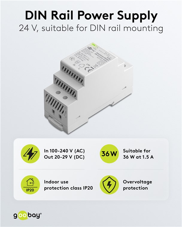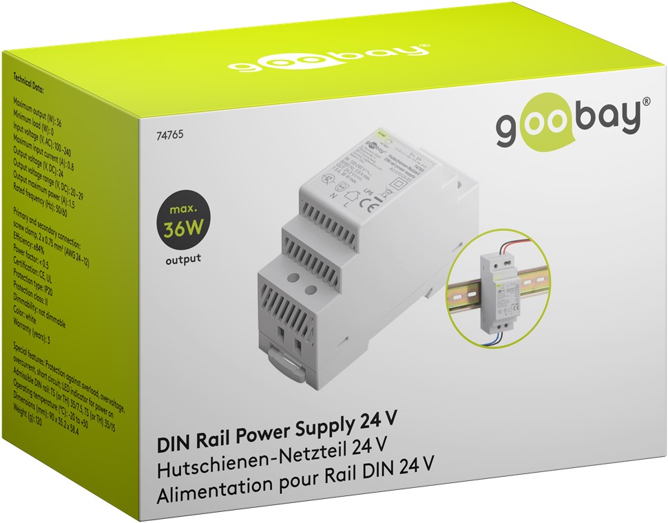 - L'alimentatore switching è particolarmente sicuro grazie alla protezione contro le sovratensioni, i sovraccarichi e i cortocircuiti, al grado di protezione IP20 e all'isolamento elettronico sicuro in conformità alla classe di protezione II