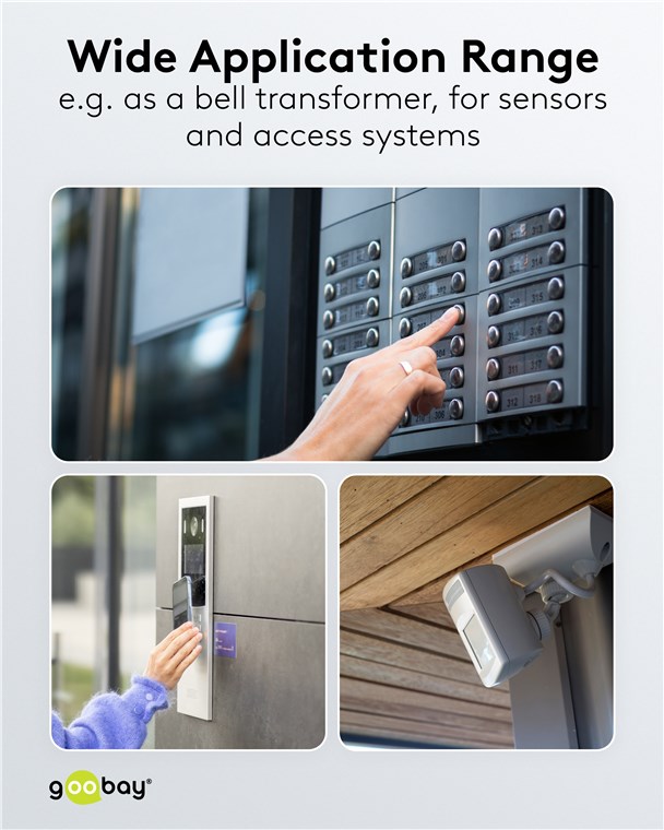 - L'alimentatore da 24 V è adatto per sistemi di controllo come campanelli, illuminazione, riscaldamento o ventilazione collegati in rete e per il funzionamento di sistemi di monitoraggio e allarme