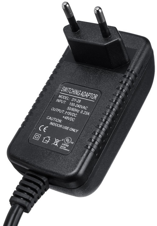 Ingresso: 100-240 V 50-60 Hz 0,23 A CA; Uscita: 15 V CC, 48 V CC.