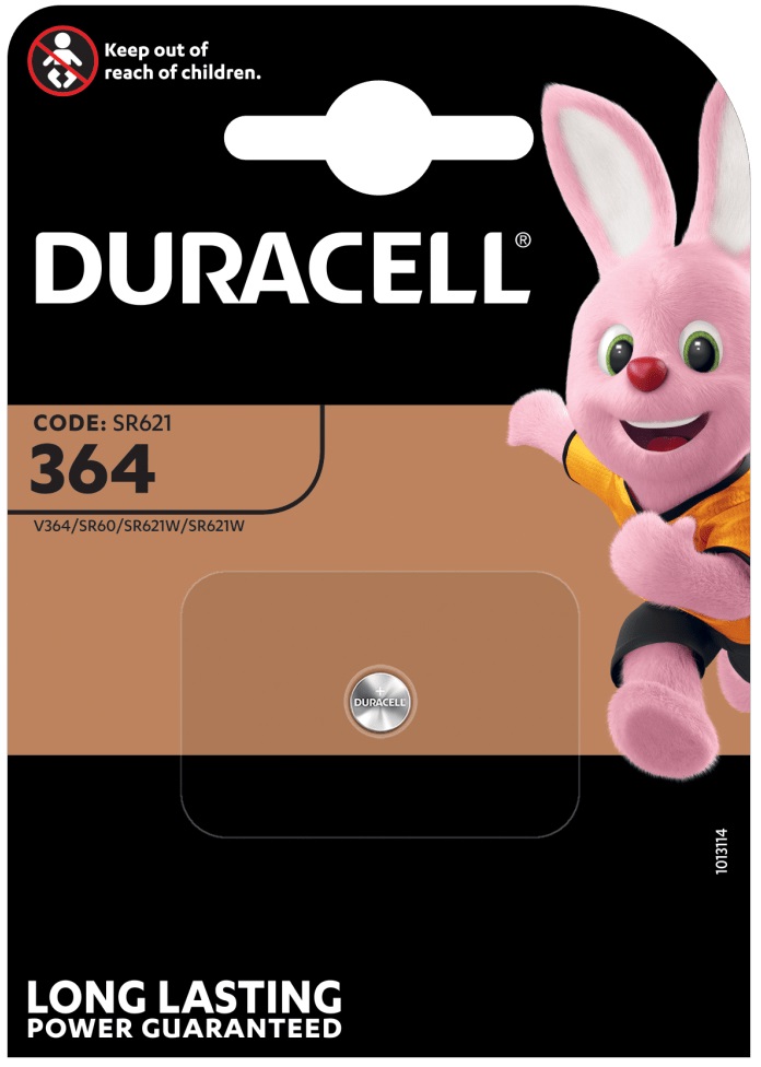 Le batterie Duracell Specialistiche 364 all’ossido di argento sono prodotte per fornire energia affidabile e duratura ai tuoi dispositivi specialistici. Garantiscono fino a 3 anni di durata se correttamente conservate nella confezione così potrai essere sicuro di avere le tue batterie a bottone all’ossido di argento pronte all'uso quando ne avrai bisogno. Sono adatte adessere usate in orologi, calcolatrici, dispositivi medici (pompe di insulina, termometri digitali).