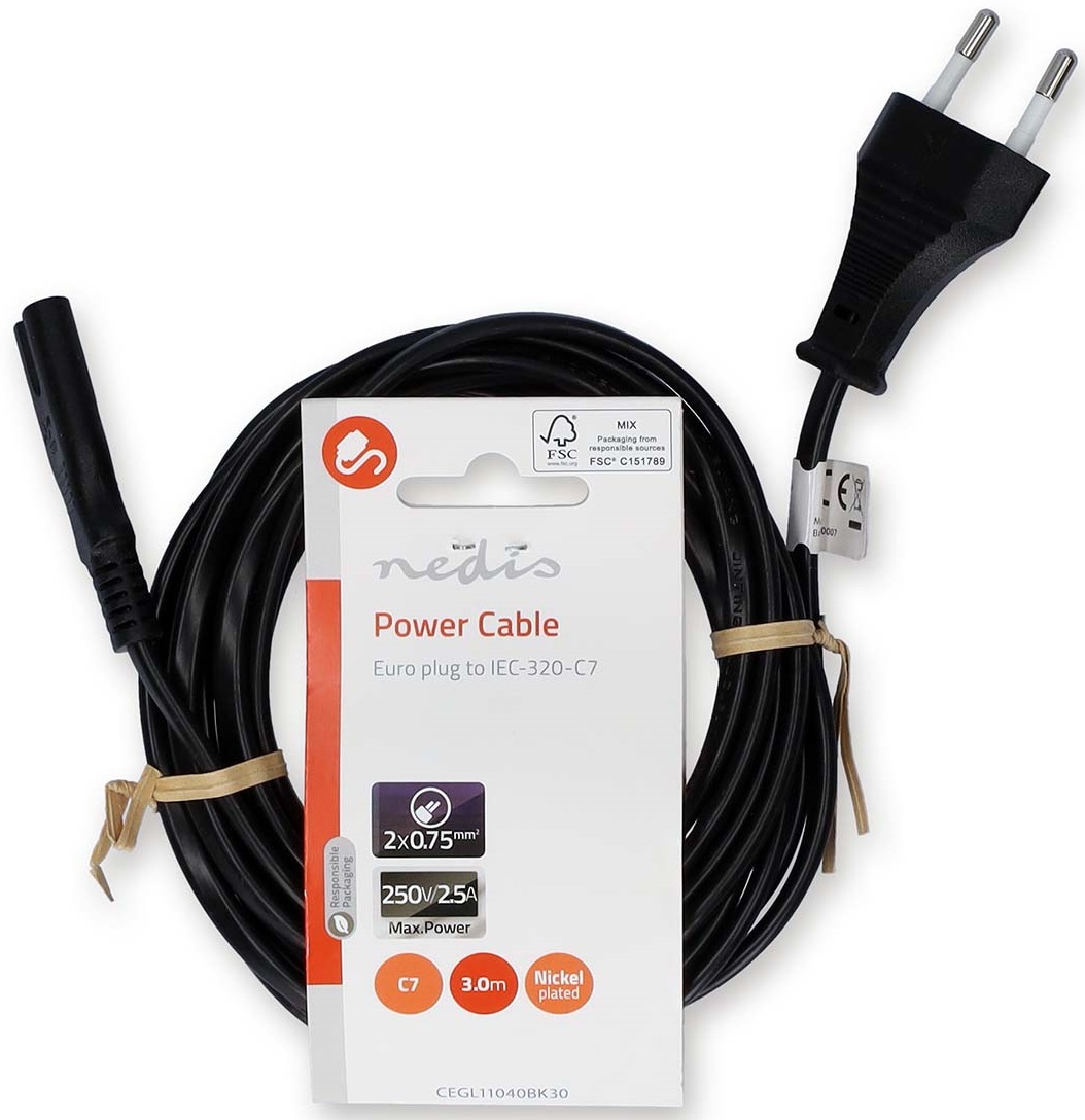 Cavo di alimentazione 3m spina Euro - IEC-320-C7