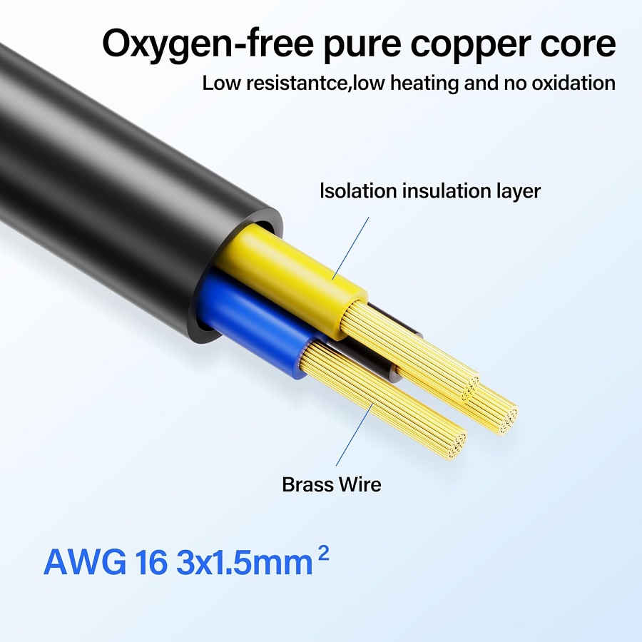 - Sezione conduttori: 3 x 1,5 mm² (16 AWG) in rame OFC a bassa resistenza