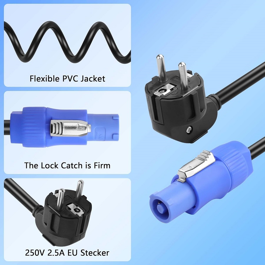 - Tipo di connessione: Schuko CEE 7/7 maschio → PowerCon Tipo A (Blu)