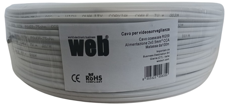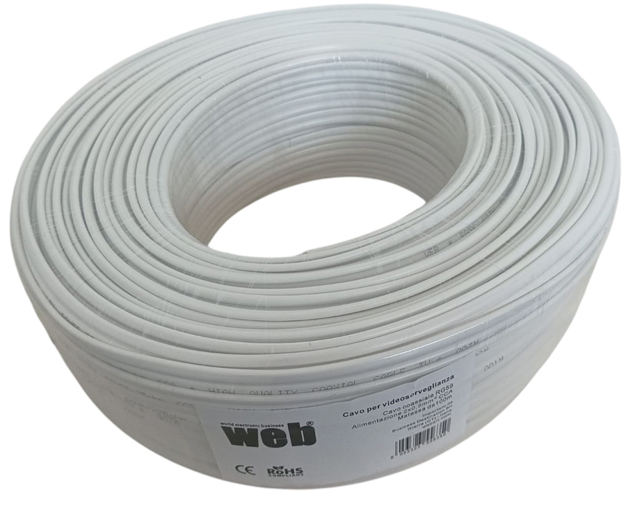 Cavo coassiale RG59 con alimentazione integrata 2 x 0,50 mm² CCA matassa da 100m