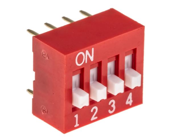 Interruttore DIP NDS-04-V, SPST, 25 mA, 4 posizioni, attuatore a Rialzato, Foro passante