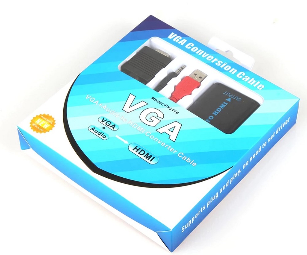 - Il convertitore VGA a HDMI converte il VGA del PC e l'audio in HDMI, consentendo il collegamento del PC a 1080p HDTV