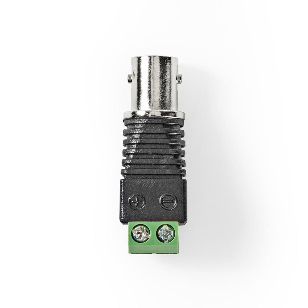 Collegare il connettore BNC con morsettiera (femmina) al cavo di una telecamera di sicurezza per creare una connessione video tramite un cavo a 2 fili.
