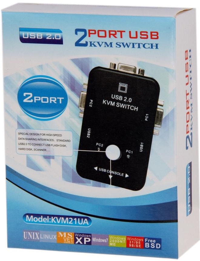 - Controlla 2 PC su 1 monitor: KVM Switch Box 2 porte consente di collegare tastiera USB, mouse USB e monitor a 2 PC, controllabili facilmente tramite il pulsante sulla parte superiore. È compatibile con 98/98SE/2000/ME/NT/XP/VISTA/XP 64bit/Vista 64bit/Win 7/Netware/Unix/Linux/Mac