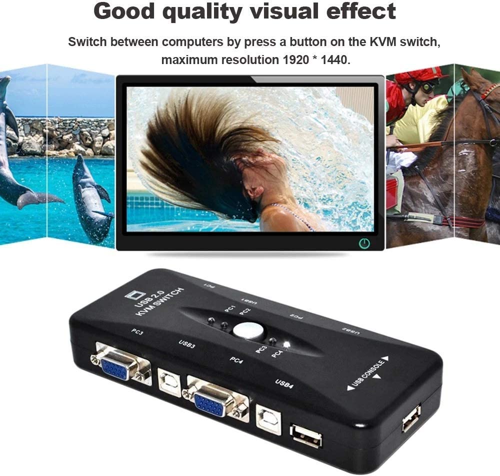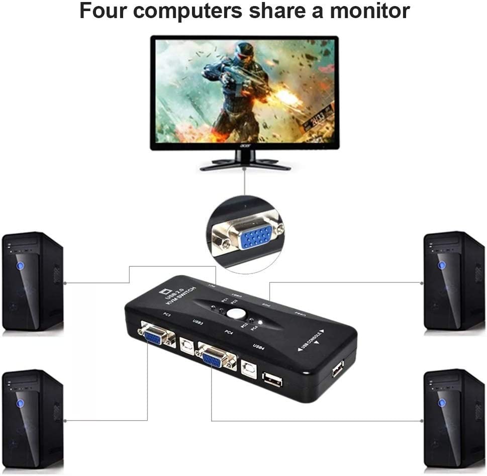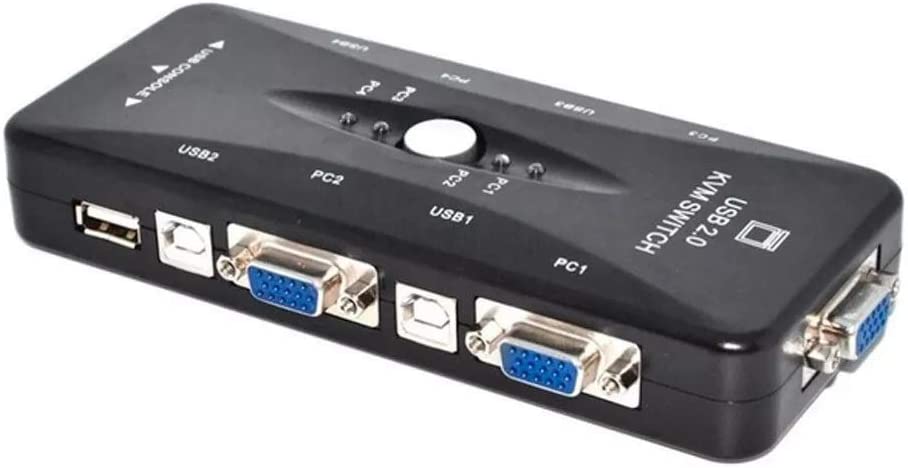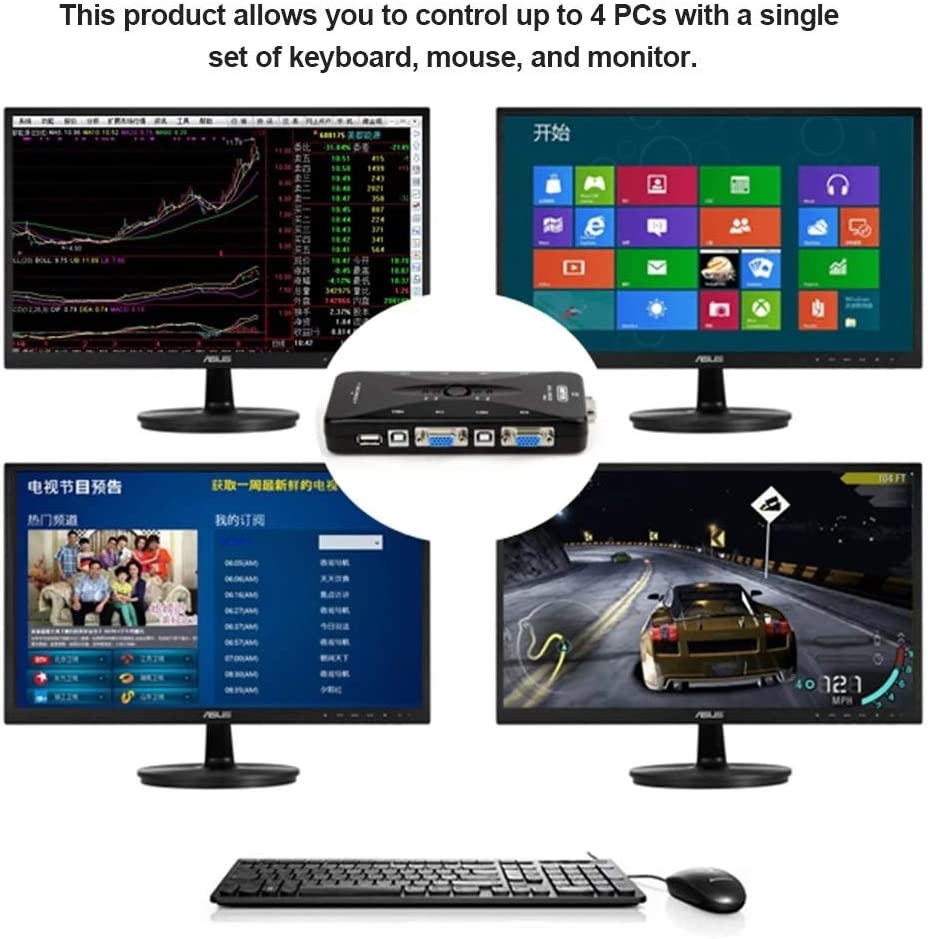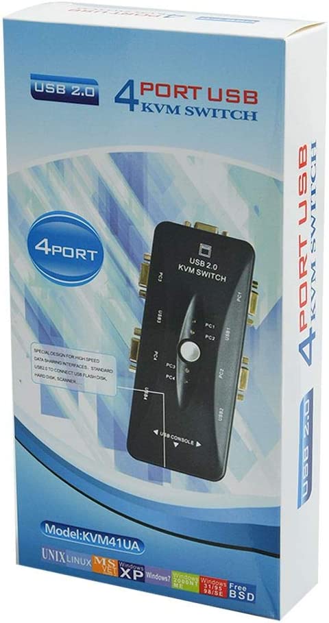 - Controlla 4 PC su 1 monitor: KVM Switch Box 4 porte consente di collegare tastiera USB, mouse USB e monitor a 4 PC, controllabili facilmente tramite il pulsante sulla parte superiore. È compatibile con 98/98SE/2000/ME/NT/XP/VISTA/XP 64bit/Vista 64bit/Win 7/Netware/Unix/Linux/Mac