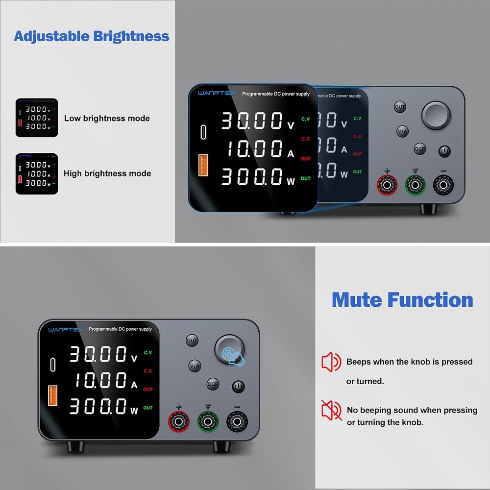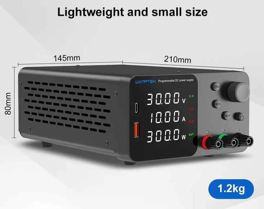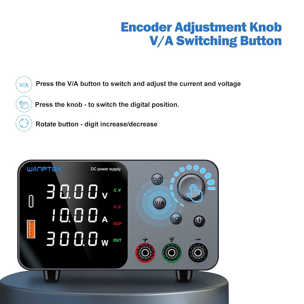 Alimentatore da banco 30V 10A 300W con regolatore di tensione CC USB/TYPE-C 18W