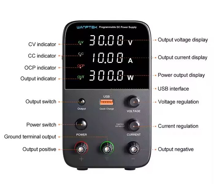 Alimentatore da banco 30V 5A 150W con regolatore di tensione CC USB 18W