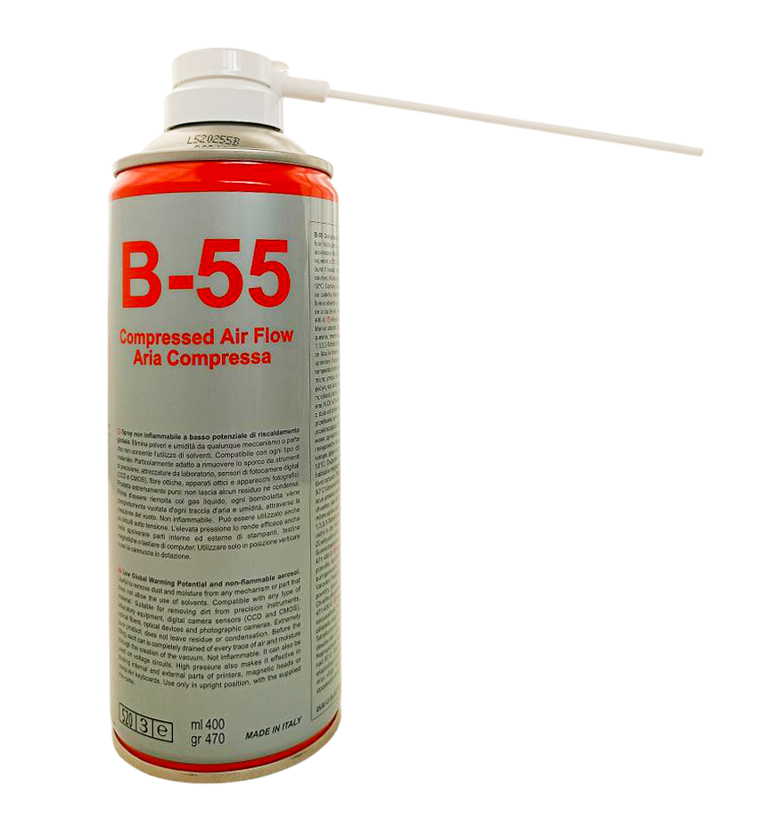 Indispensabile per eliminare polveri e umidità da qualunque meccanismo o parte che non consente l’utilizzo di solventi.
