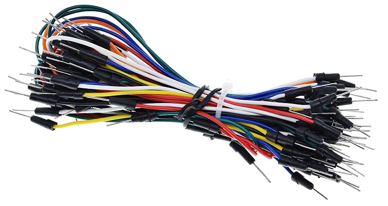 1 set di cavi jumper (65 pezzi) in diverse lunghezze e colori; i fili sono flessibili e riutilizzabili