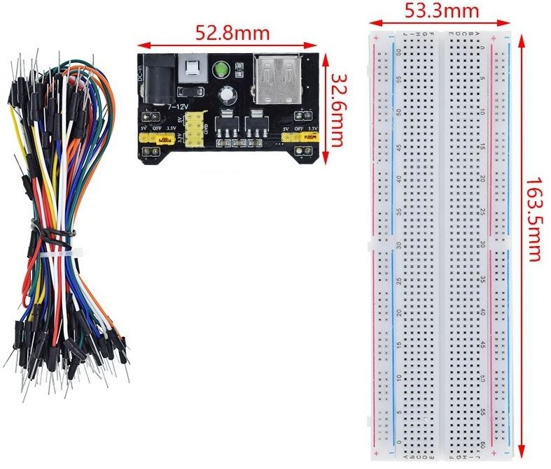 Kit breadboard MB102 830 punti con cavi jumper e modulo di alimentazione