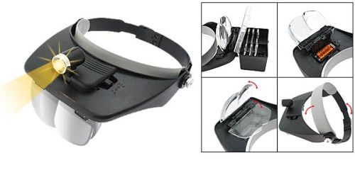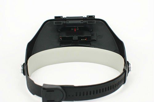Lente di ingrandimento "a visiera" con illuminazione tramite un led alimentato da due batterie ministilo AAA da 1,5 v fornite di serie.