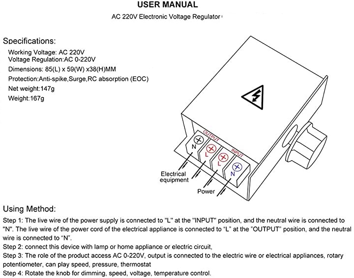 - Regolazione della tensione: da 10 V a 220 V