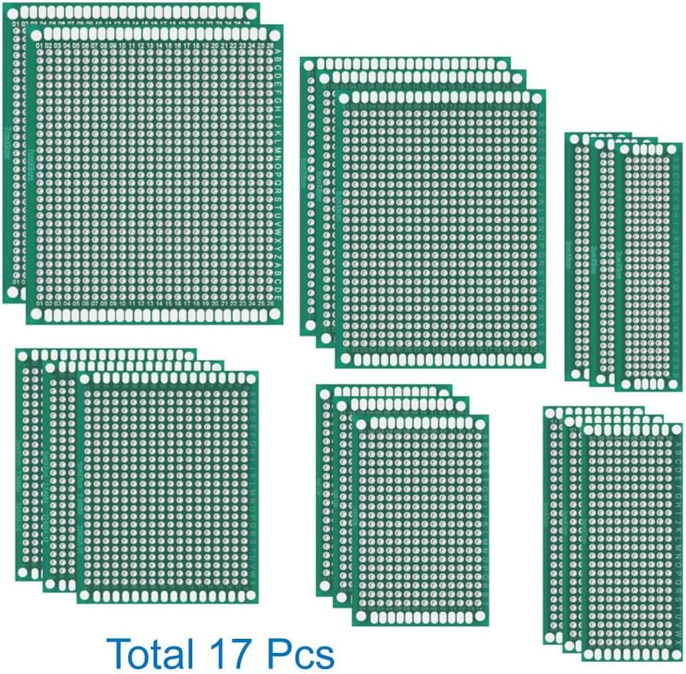 - Il set di schede PCB viene fornito con una protoboard da 17 pezzi che è sufficiente per saldatura fai-da-te, prototipazione, schede arduino e altri piccoli progetti.