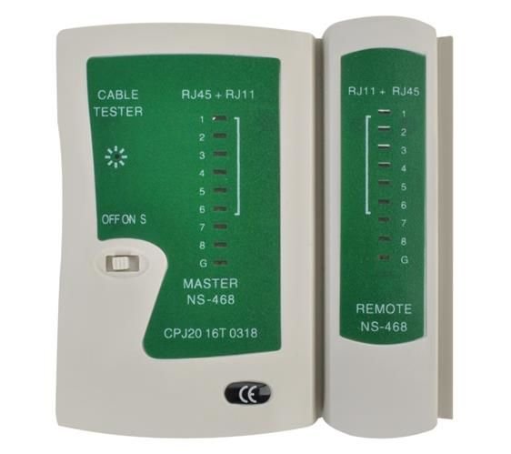 destinato al test di cavi UTP, FTP, STP e telefonici RJ45, RJ11. 9 LED indicano l'accuratezza della qualità, rilevando collegamenti difettosi, cortocircuiti e interruzioni nel cablaggio.