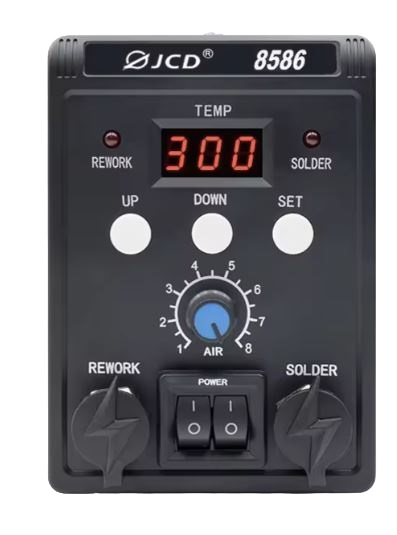 Il JCD 8586-B è la scelta ideale per professionisti e appassionati che apprezzano la qualità, l'affidabilità e la precisione. Grazie alle sue elevate prestazioni e alla facilità d'uso, questa stazione saldante con pistola ad aria calda offre elevate prestazioni e durata.
