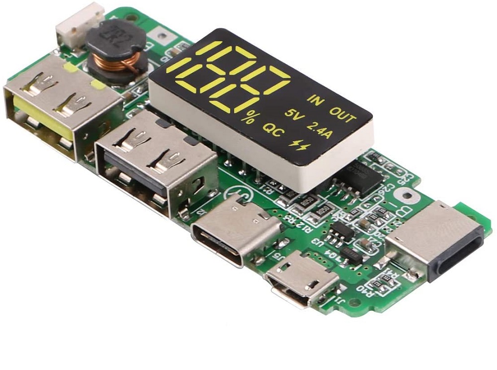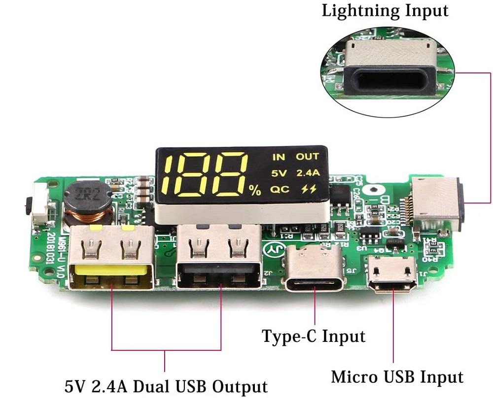 - Dimensioni: 6,5 * 2,5 * 0,1 cm; Doppia corrente di uscita: 5 V 2,4 A; Tensione di ingresso da B + a B-: 3,0 - 4,2 V.