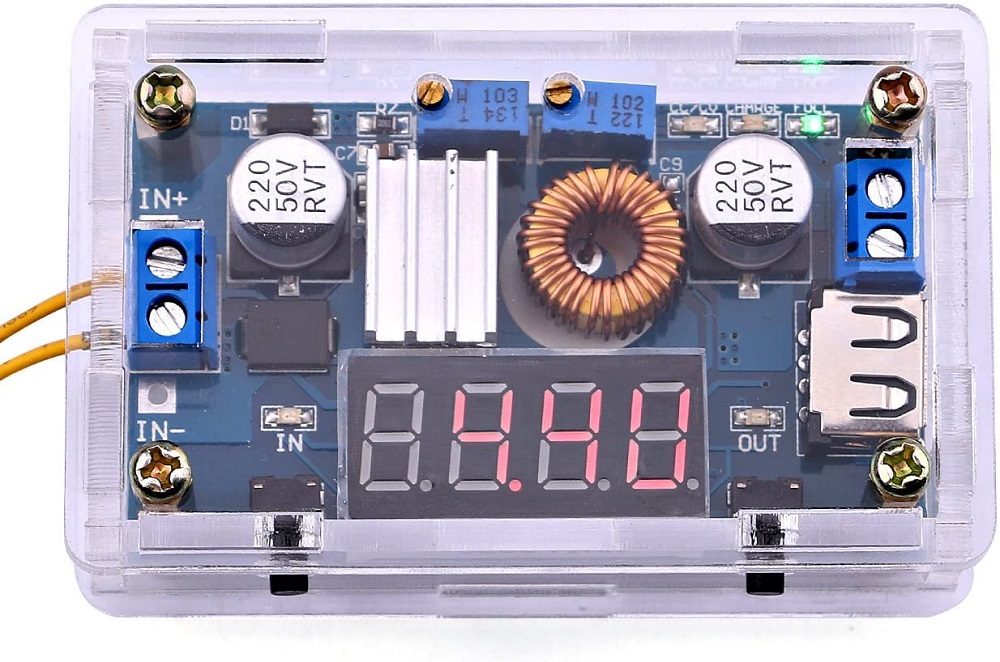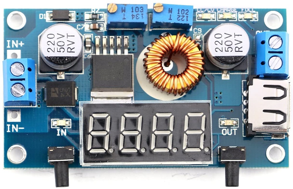 Regolatore di tensione da 5-36V a 1,25-32V DC con display e USB