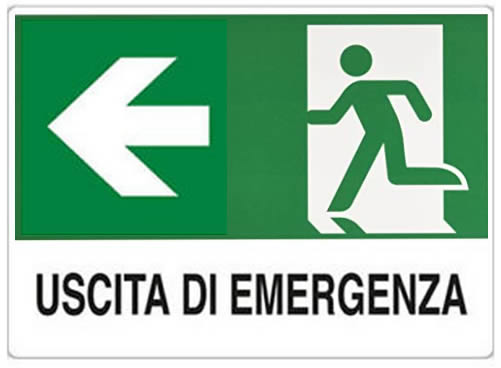Cartello segnaletico uscita di emergenza con freccia a sinistra 30x20cm