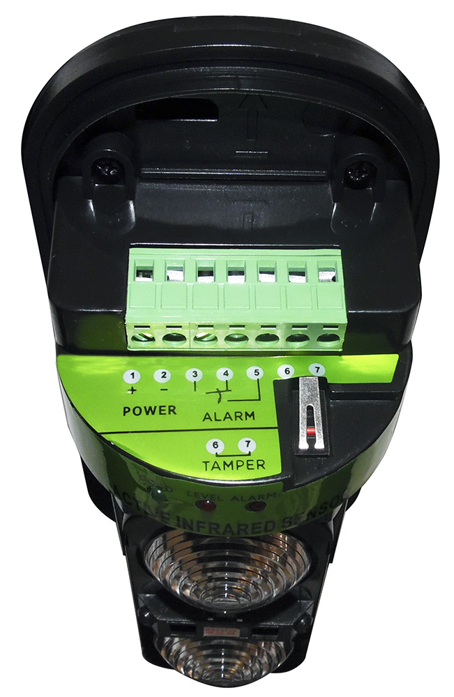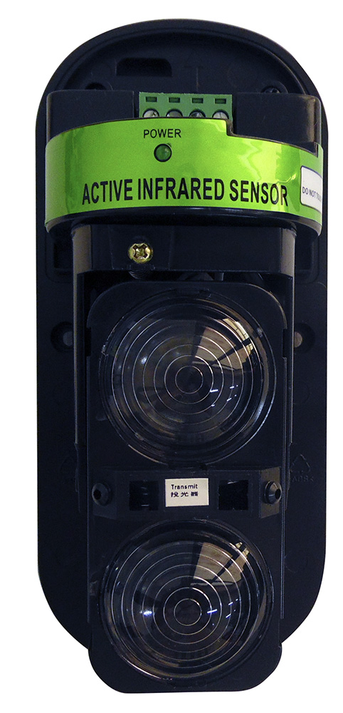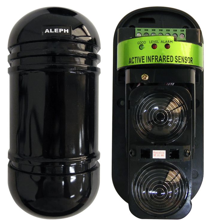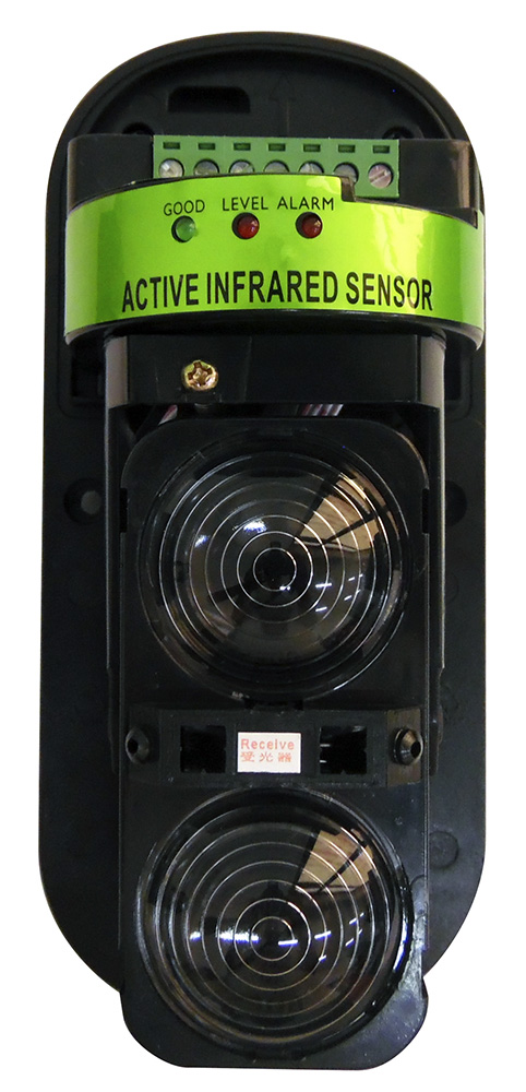 Barriera infrarossi a due fasci con portata fino a 100 metri. Dispone di un LED che indica l'allineamento dei fasci, di interruttore antimanomissione e di controllo automatico del guadagno in qualsiasi condizione ambientale (pioggia, nebbia, neve, ecc). Tempo di risposta regolabile da 0.05 a 0.7 secondi. L'utilizzo di un doppio fascio consente di ridurre notevolmente il problema dei falsi allarmi; il dispositivo, infatti, genera il segnale di allarme solamente se i due fasci vengono interrotti contemporaneamente. Il set è composto da un trasmettitore, da un ricevitore e dagli accessori per montaggio.