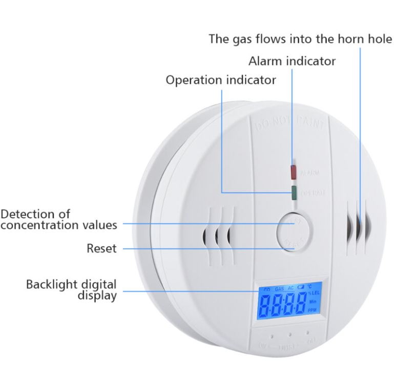Rilevatore di monossido di carbonio con sensore elettrochimico ad alta precisione, progettato per offrire protezione affidabile in ambienti domestici. Dotato di display LCD retroilluminato per la visualizzazione dei valori di concentrazione (PPM), stato di alimentazione e temperatura ambiente. L’indicatore LED segnala il normale funzionamento (verde) o lo stato di allarme (rosso), accompagnato da un forte segnale acustico (85 dB) in caso di pericolo. Il pulsante Test/Reset consente di verificare manualmente il corretto funzionamento del dispositivo.