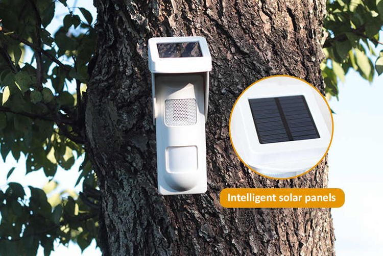 Il sensore di movimento è un sensore con un raggio d'azione di 12 metri x 120° e ottica supplementare per rilevare chi rasenta il perimetro. La batteria interna a lunga durata si ricarica a energia solare.