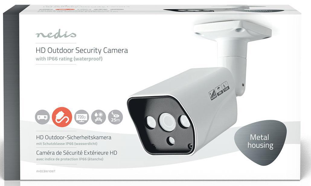 Configura un'installazione CCTV che soddisfi tutte le tue esigenze, proteggendo ogni angolo della tua casa in modo efficiente. Collega questa videocamera bullet HD Nedis® al tuo DVR HD analogico per acquisire immagini nitide a prescindere dalle condizioni. L'involucro in metallo è impermeabile (IP66) e ti offre tutta la libertà di installare questa videocamera sia all'interno che all'esterno. Array LED infrarossi in dotazione. Questi garantiscono al fascio luminoso di coprire una distanza più lunga.