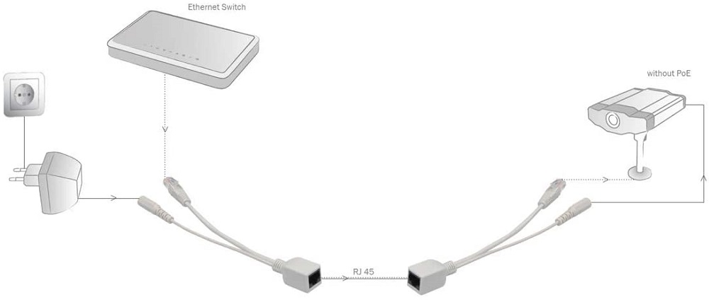 Usando questo splitter si possono quindi alimentare i dispositivi ethernet installati in luoghi dove non ci sia alimentazione elettrica, ad esempio telecamere IP, permettendo di installare solo il cavo di rete e facendo viaggiare l'alimentazione su questo cavo.