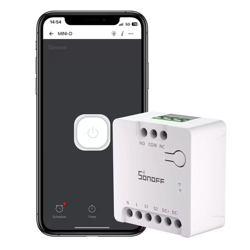 Il Sonoff MINI-D è uno switch smart Wi-Fi a contatto pulito progettato per portare l’automazione avanzata a casa tua o nei tuoi spazi professionali. Grazie alla compatibilità con il protocollo Matter, offre un’integrazione universale con i principali ecosistemi smart home, tra cui Amazon Alexa, Google Home, Apple HomeKit e SmartThings. Progettato per supportare alimentazione AC/DC, questo interruttore intelligente è ideale per controllare una vasta gamma di dispositivi, come porte da garage, cancelli elettrici, sistemi HVAC, impianti di irrigazione e elettrovalvole.Con il Sonoff MINI-D, puoi trasformare dispositivi tradizionali in soluzioni smart, migliorando il comfort e l’efficienza.