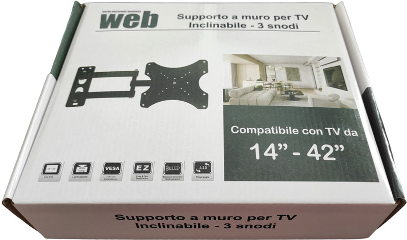 Supporto a muro per TV LED LCD 14-42'' inclinabile 3 snodi nero