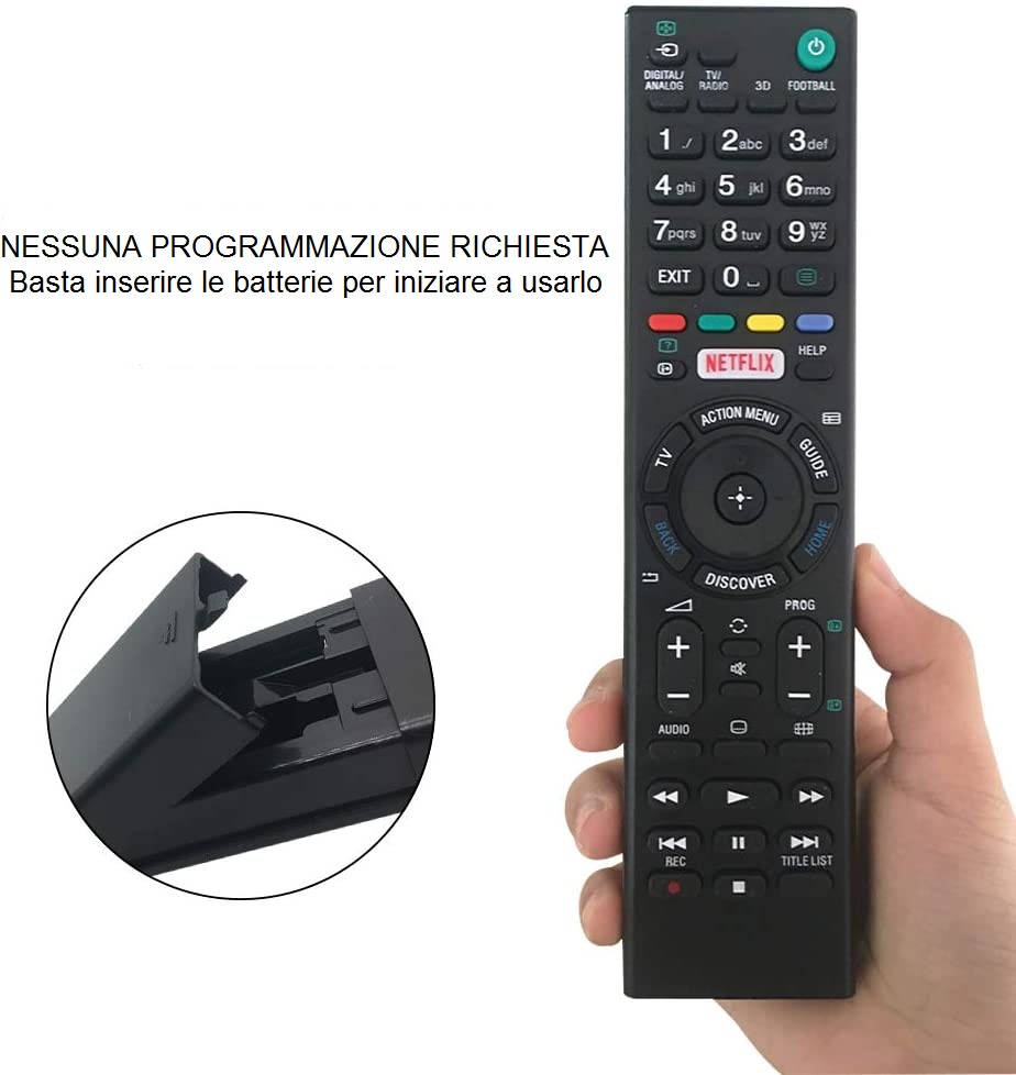 Telecomando universale per TV Sony. Funziona senza bisogno di programmazione.
