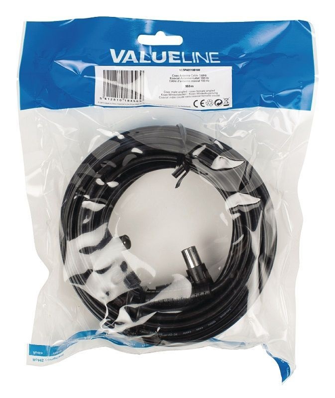 Cavo Coassiale ad Angolo Coassiale Maschio – Femmina Coax (IEC) 10m Nero