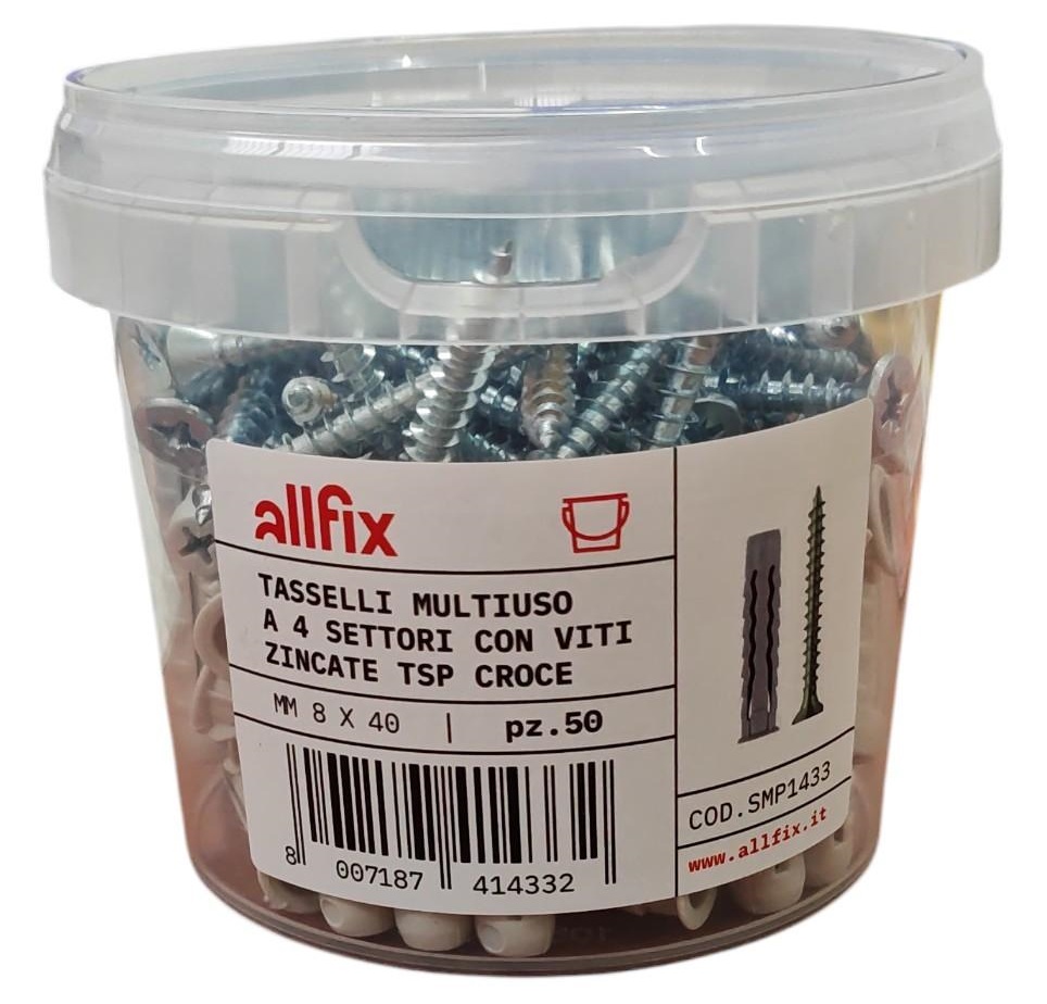 Tasselli multiuso F4V a 4 settori in nylon con vite TSP croce 8x40mm - 50 pezzi